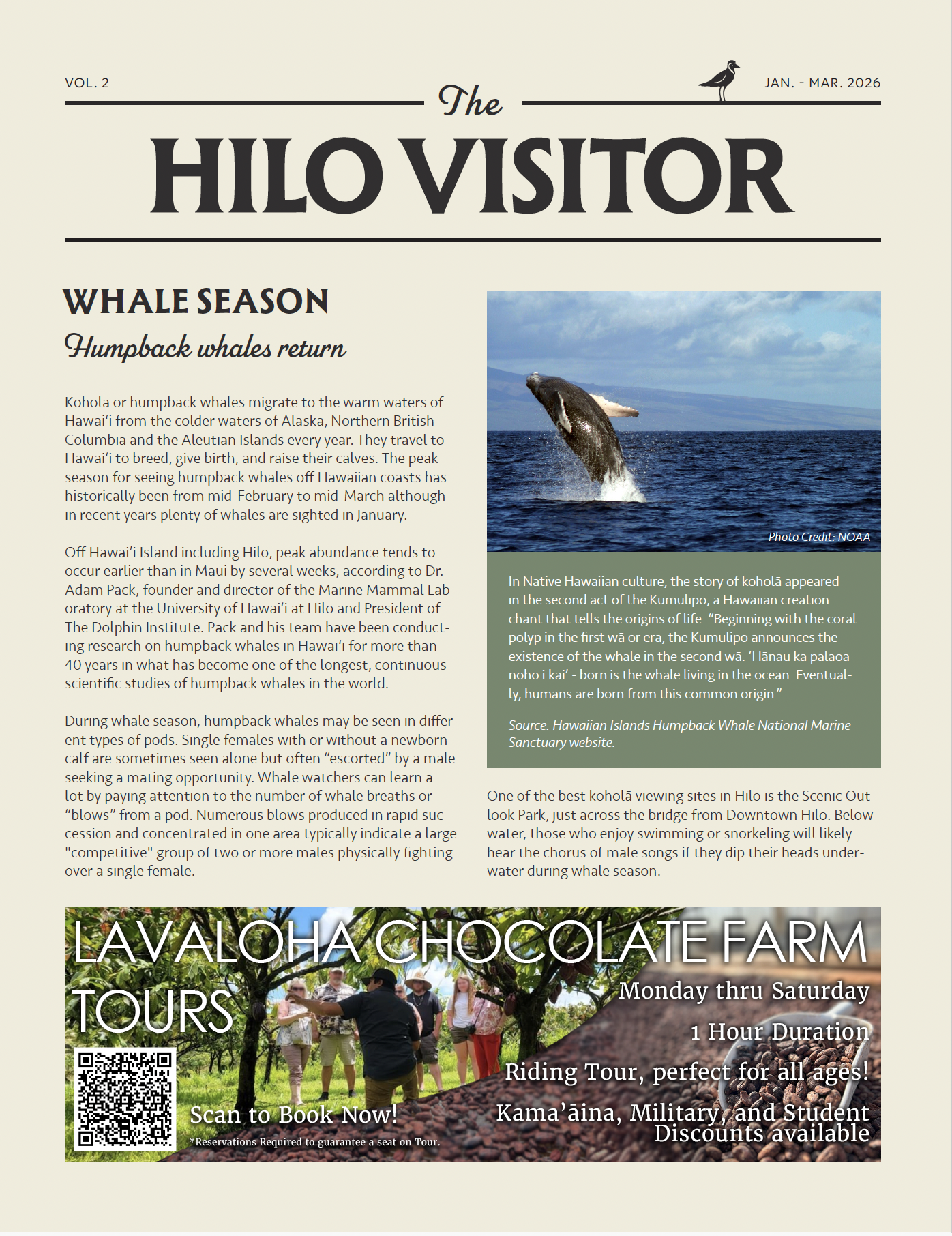 The Hilo Visitor is a high-quality, quarterly newsletter created to connect visitors with what makes Hilo unique and special. It features delightful and informative articles that support local businesses, and respects Native Hawaiian culture and the natural world.